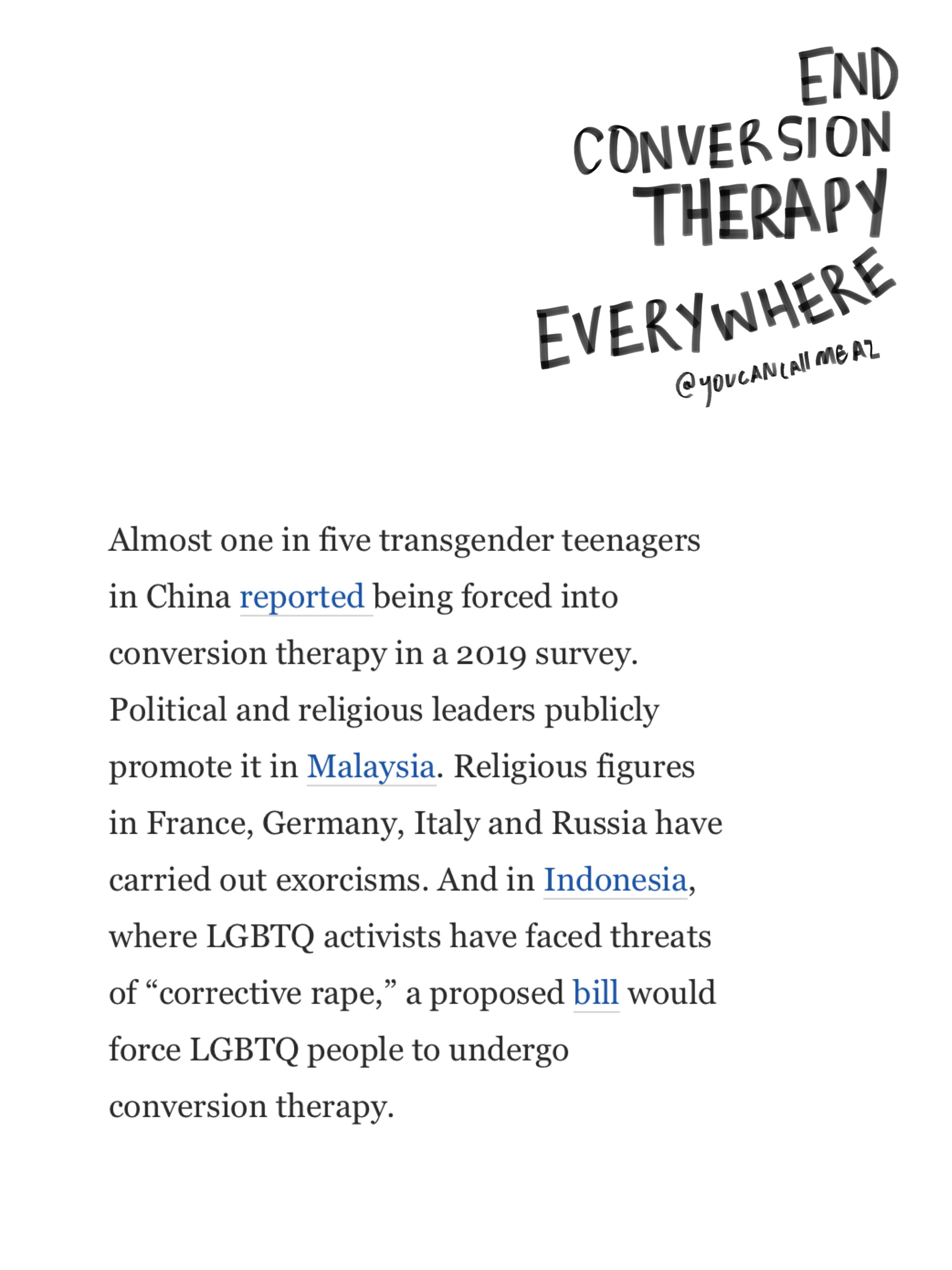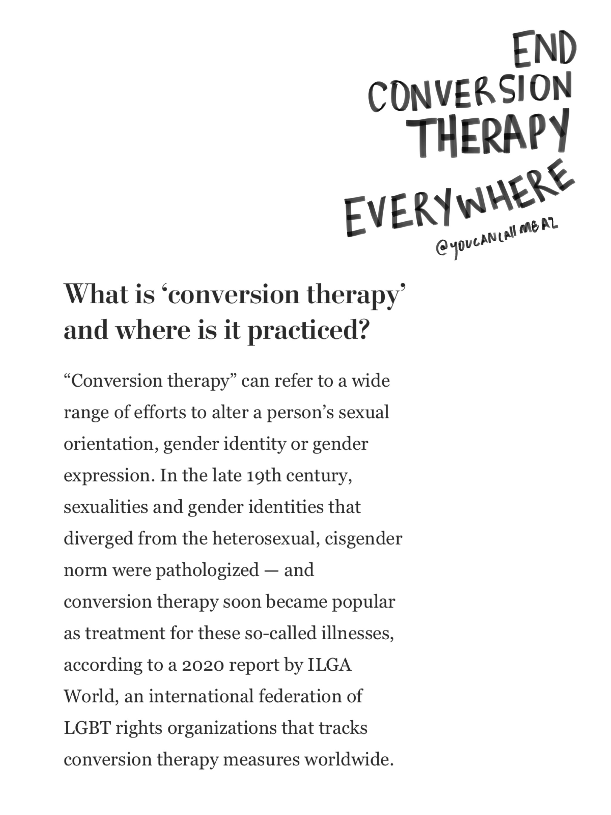 the number of countries that conversion therapy is still being practiced in is shocking. the acts that are being inflicted on people in our communities still to this day are unspeakable.