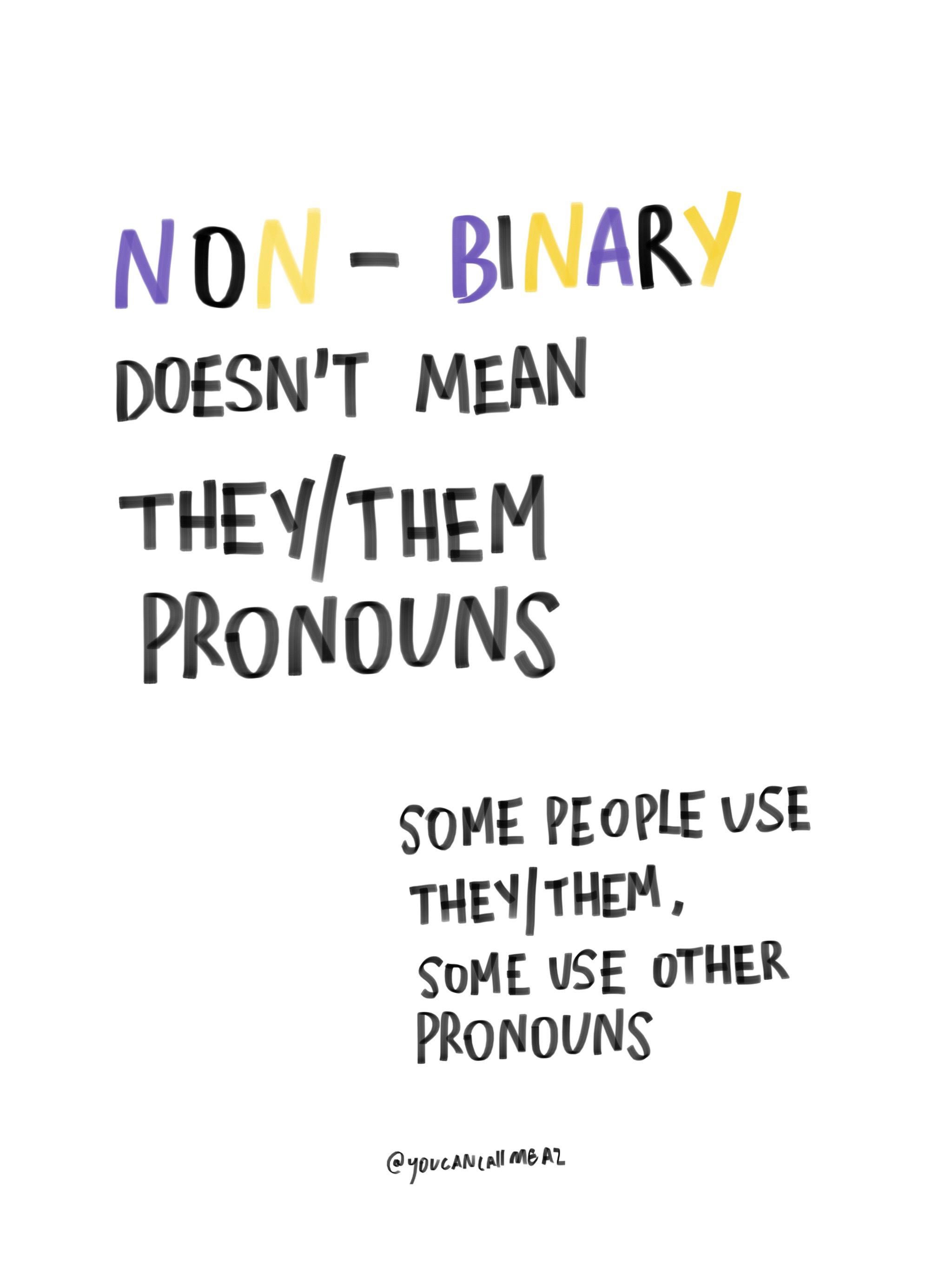 non binary doesn’t mean they /them pronouns. some use they/them, some use other pronouns.