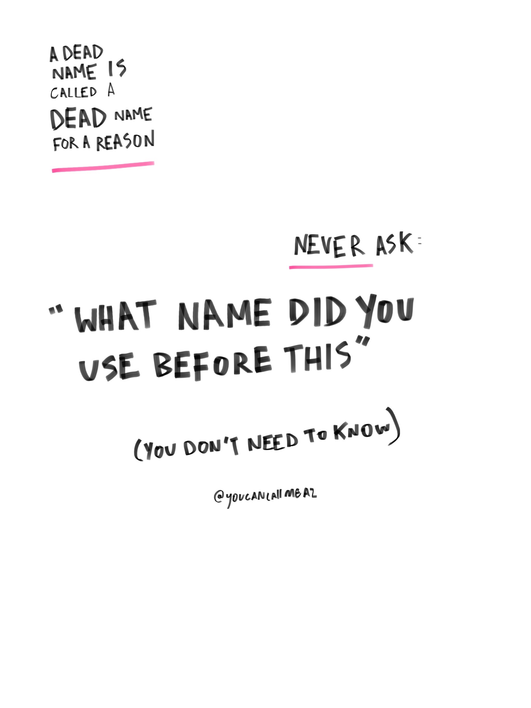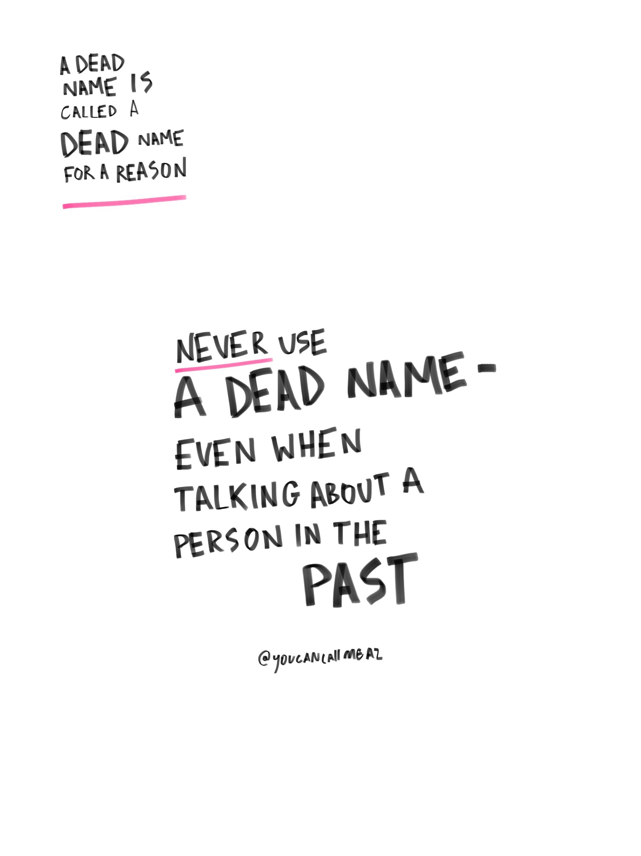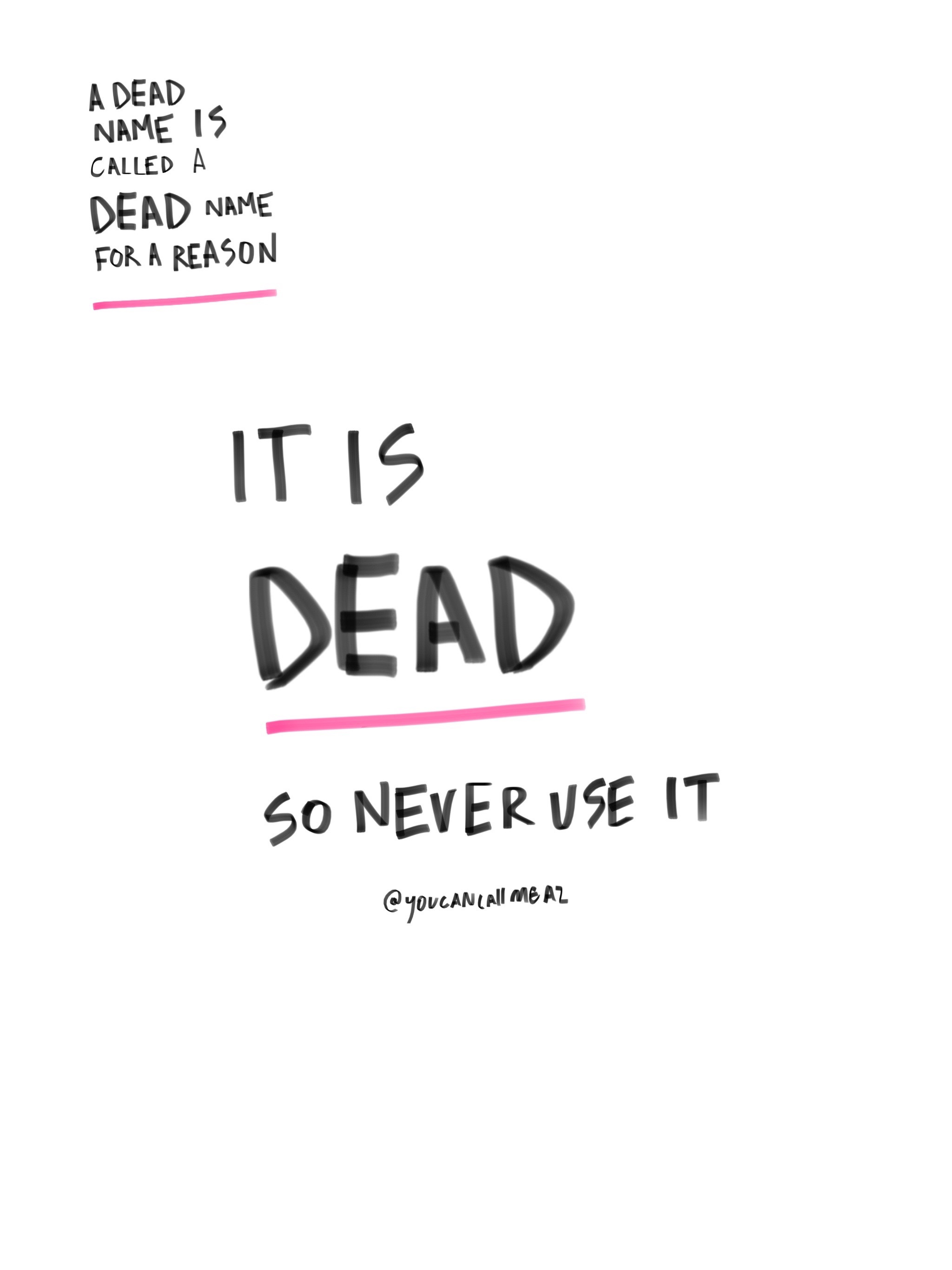 A dead name is called a dead name for a reason. It’s dead – SO NEVER USE IT!