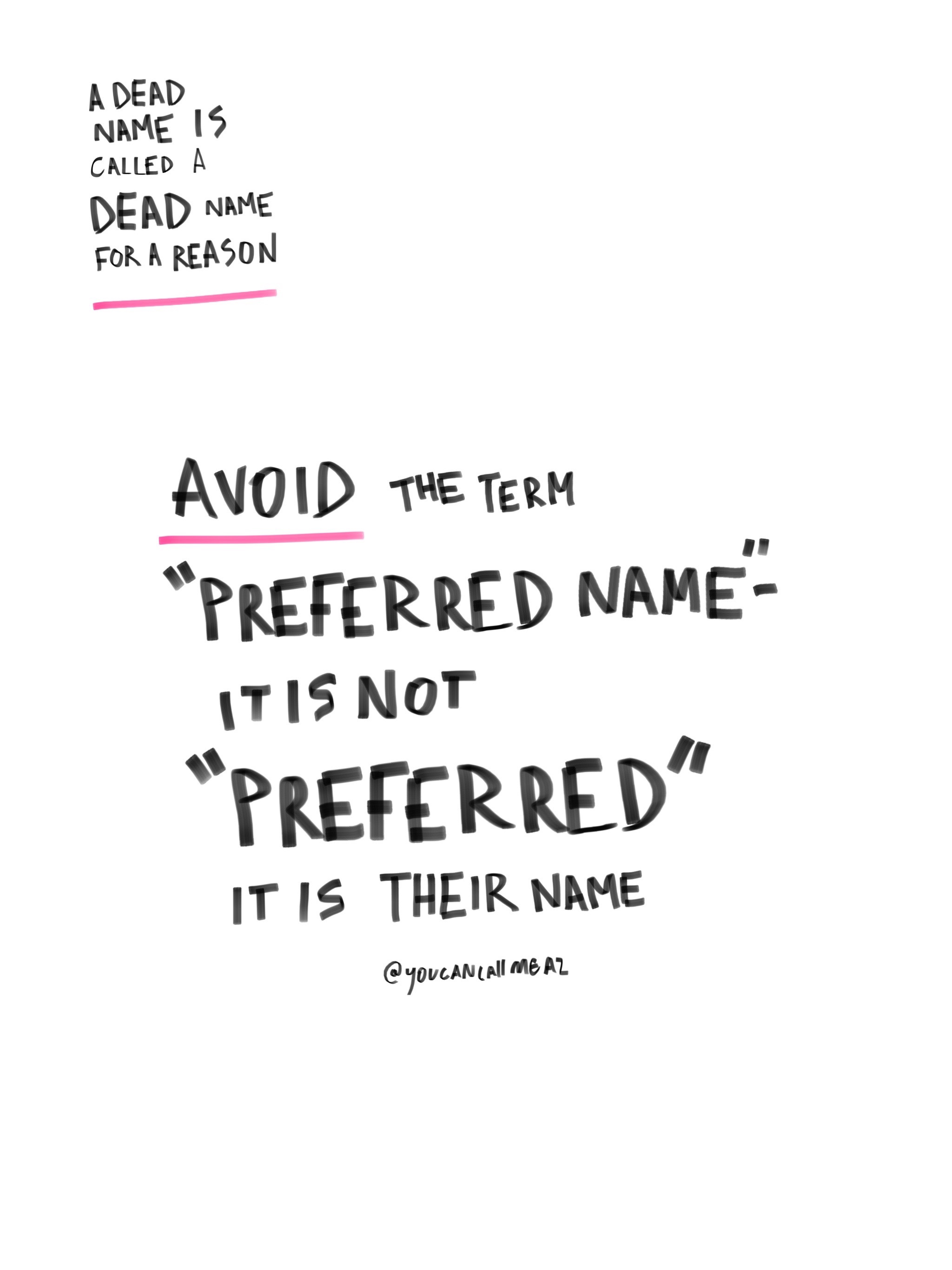 avoid using the term “preferred name” – it’s not “preferred” it just is their name