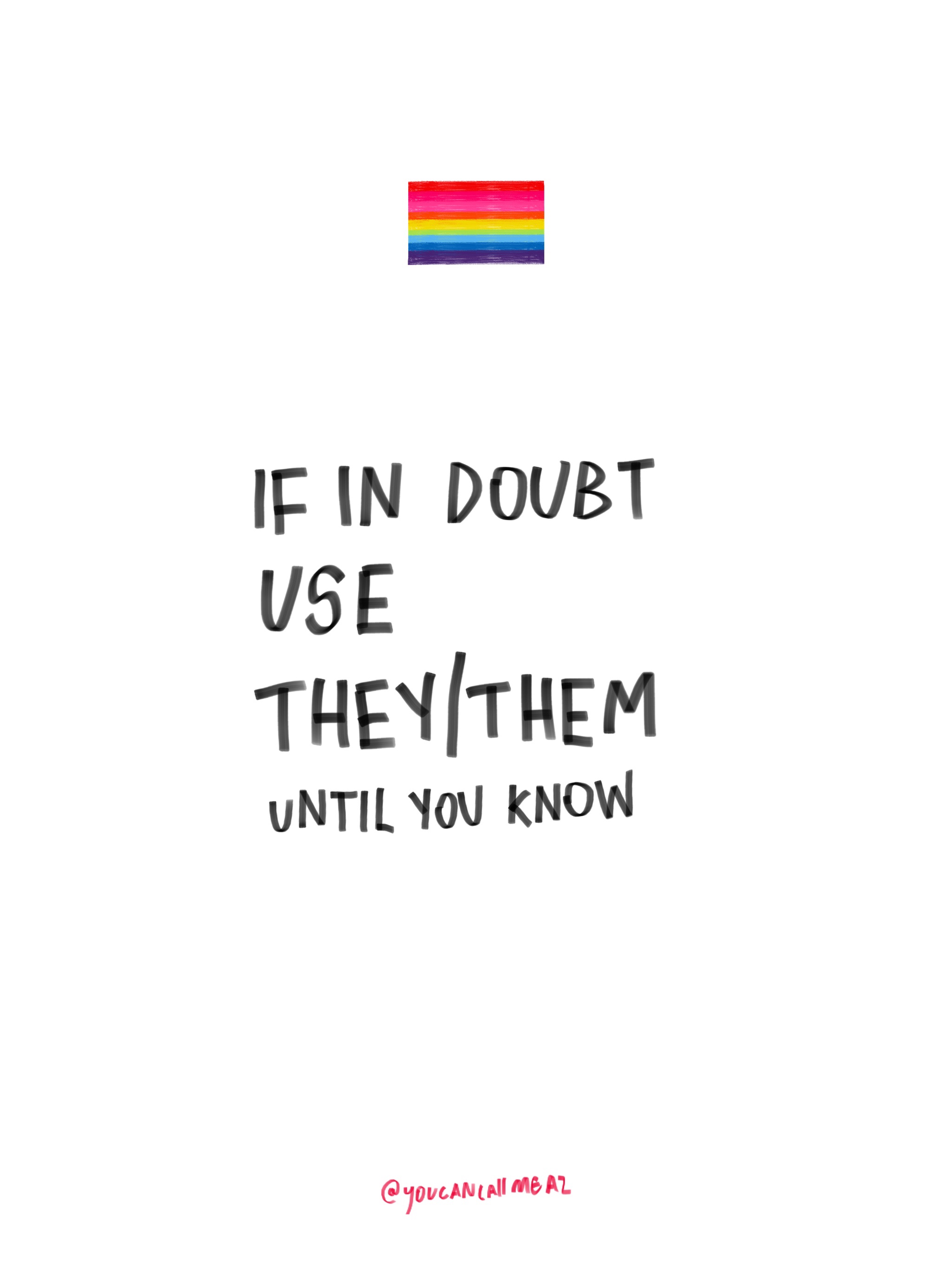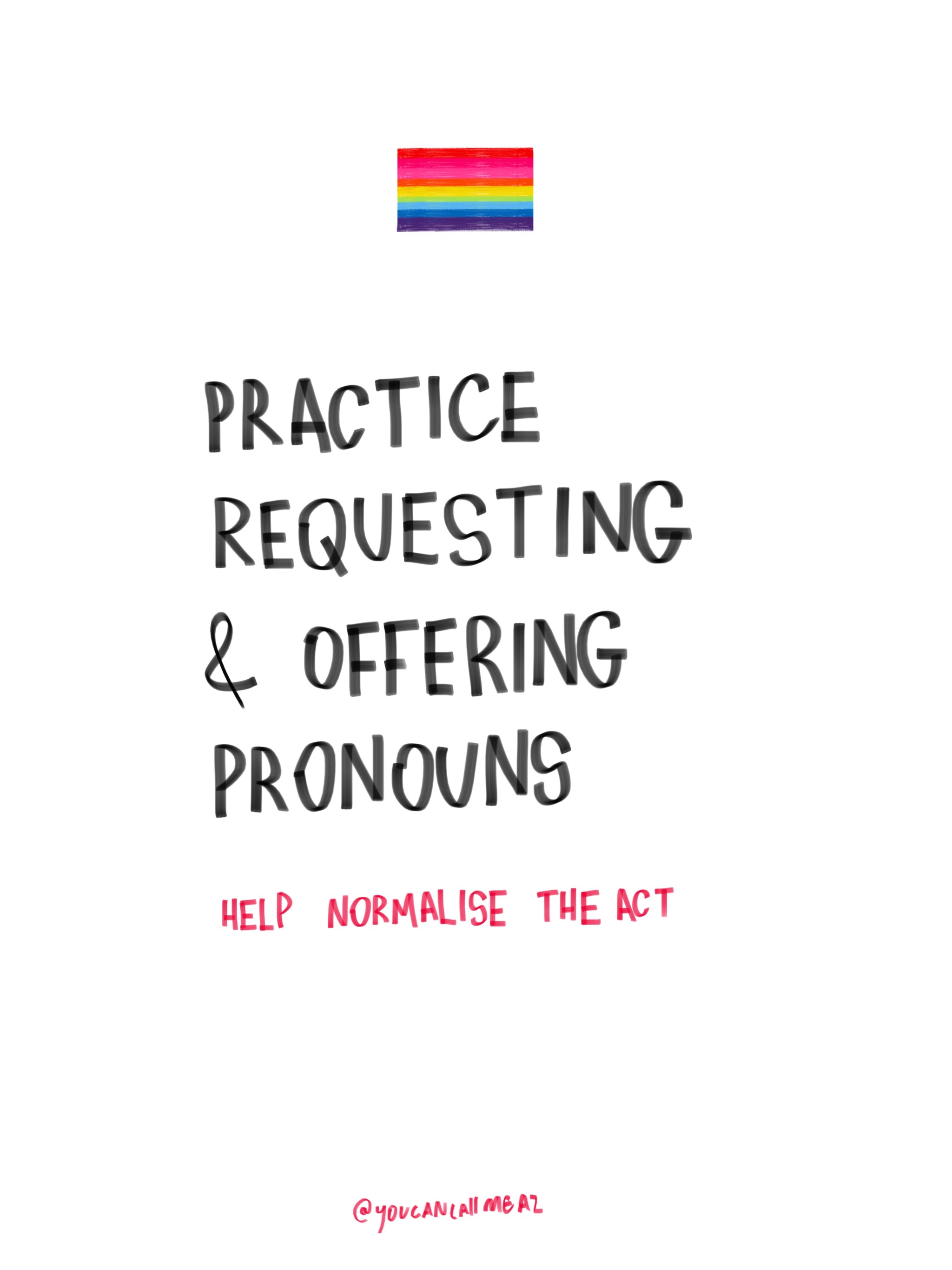 International Pronouns Day Posted byAz FrancoOctober 20, 2021Posted intrans rightsTags:az franco, international pronouns day, pronouns day, trans rights, transgender, youcancallmeaz Being misgendered hurts Share this:TweetLike Loading...