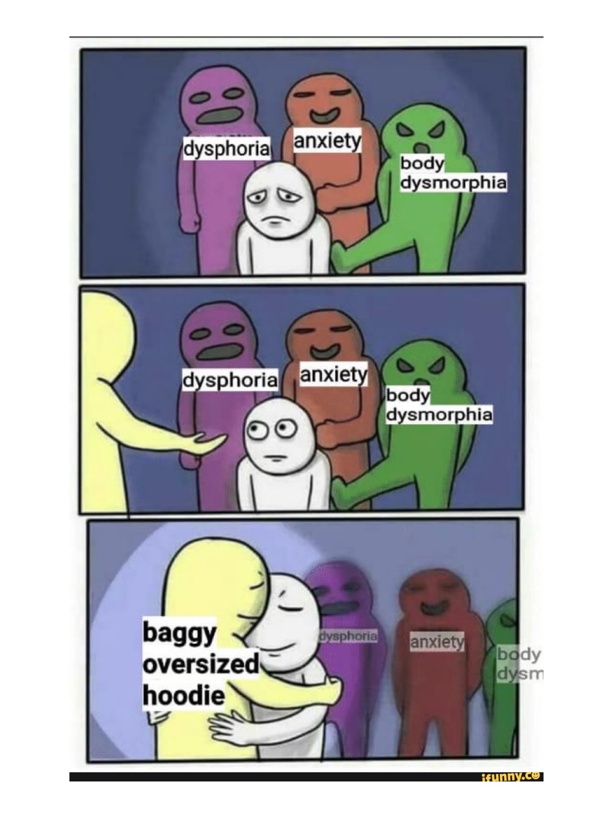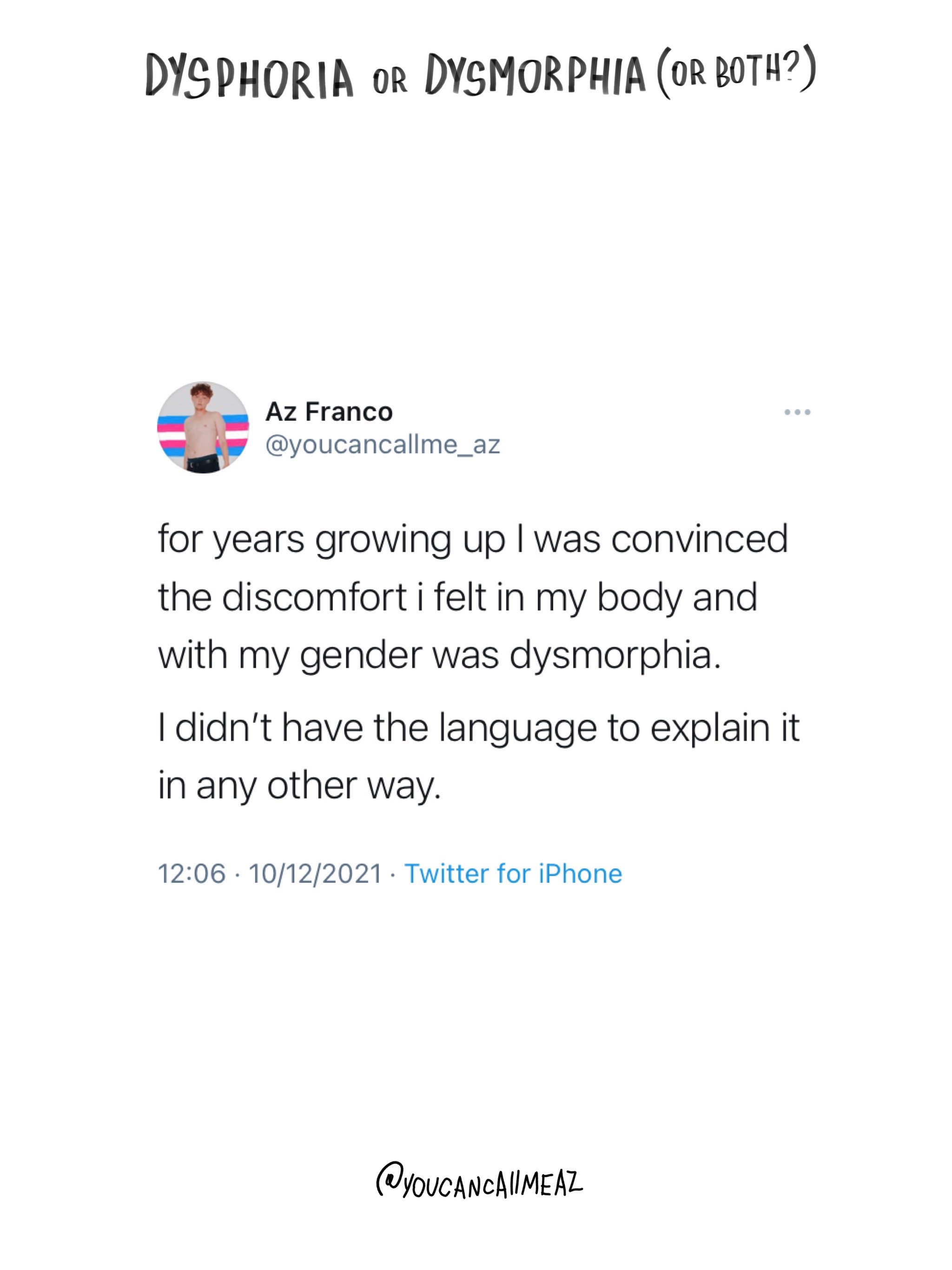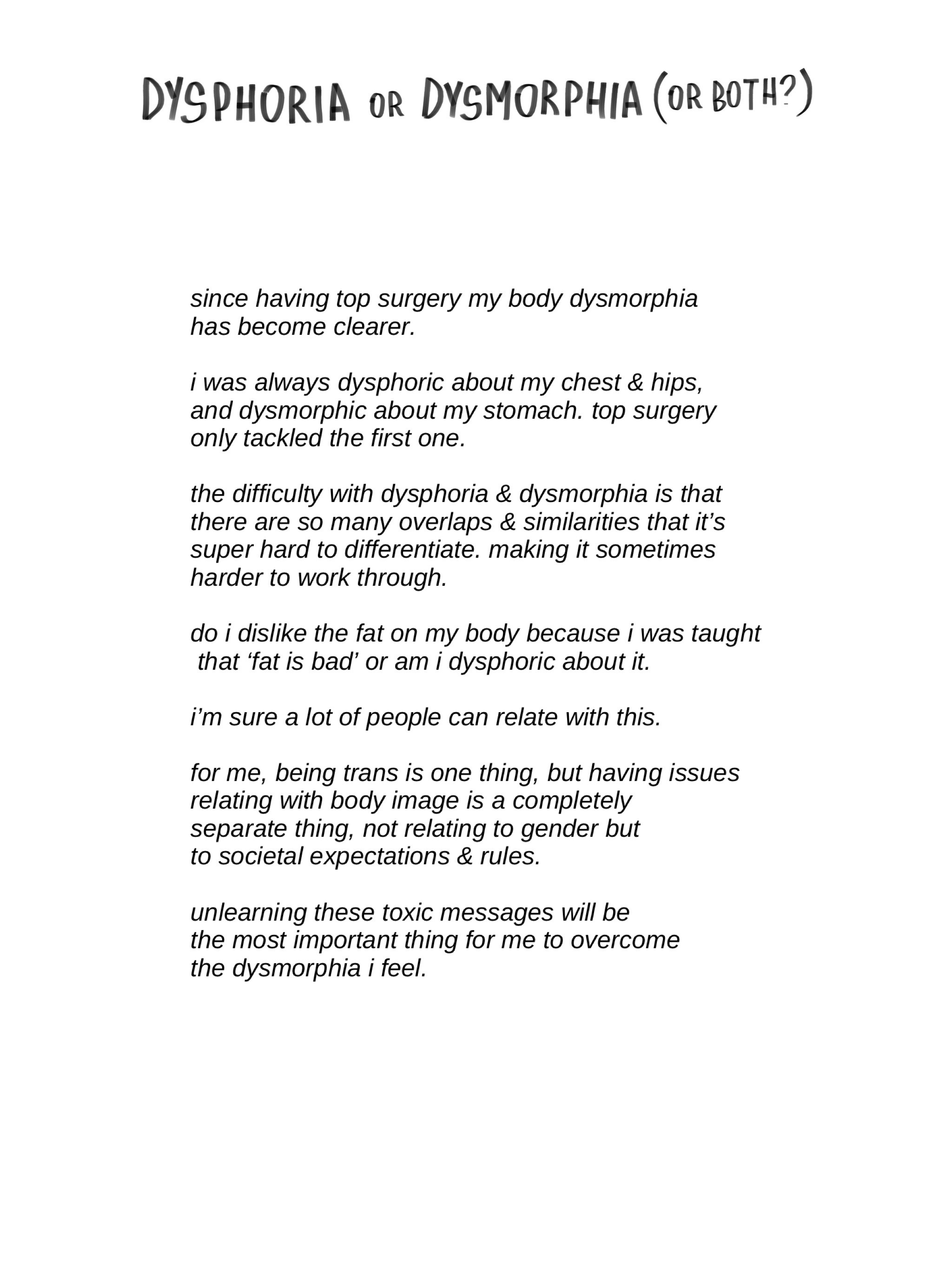 i was always dysphoric about my chest & hips, and dysmorphic about my stomach.