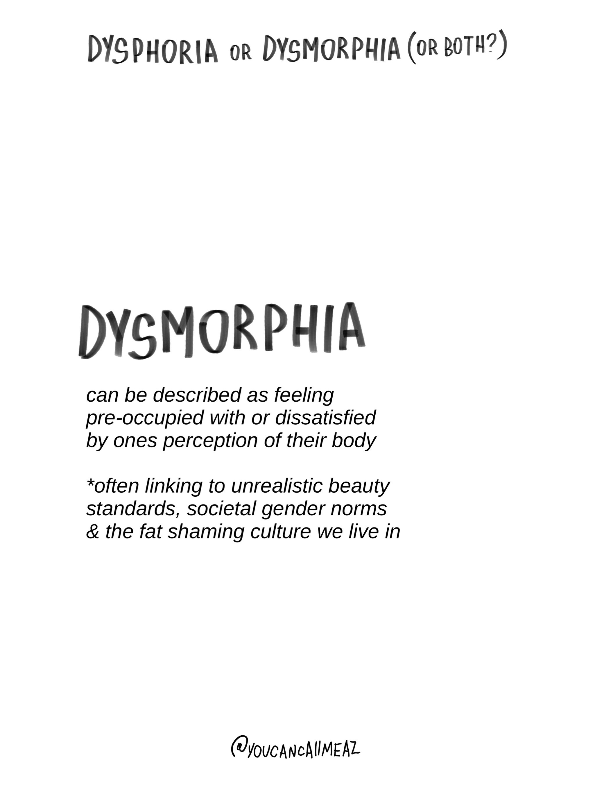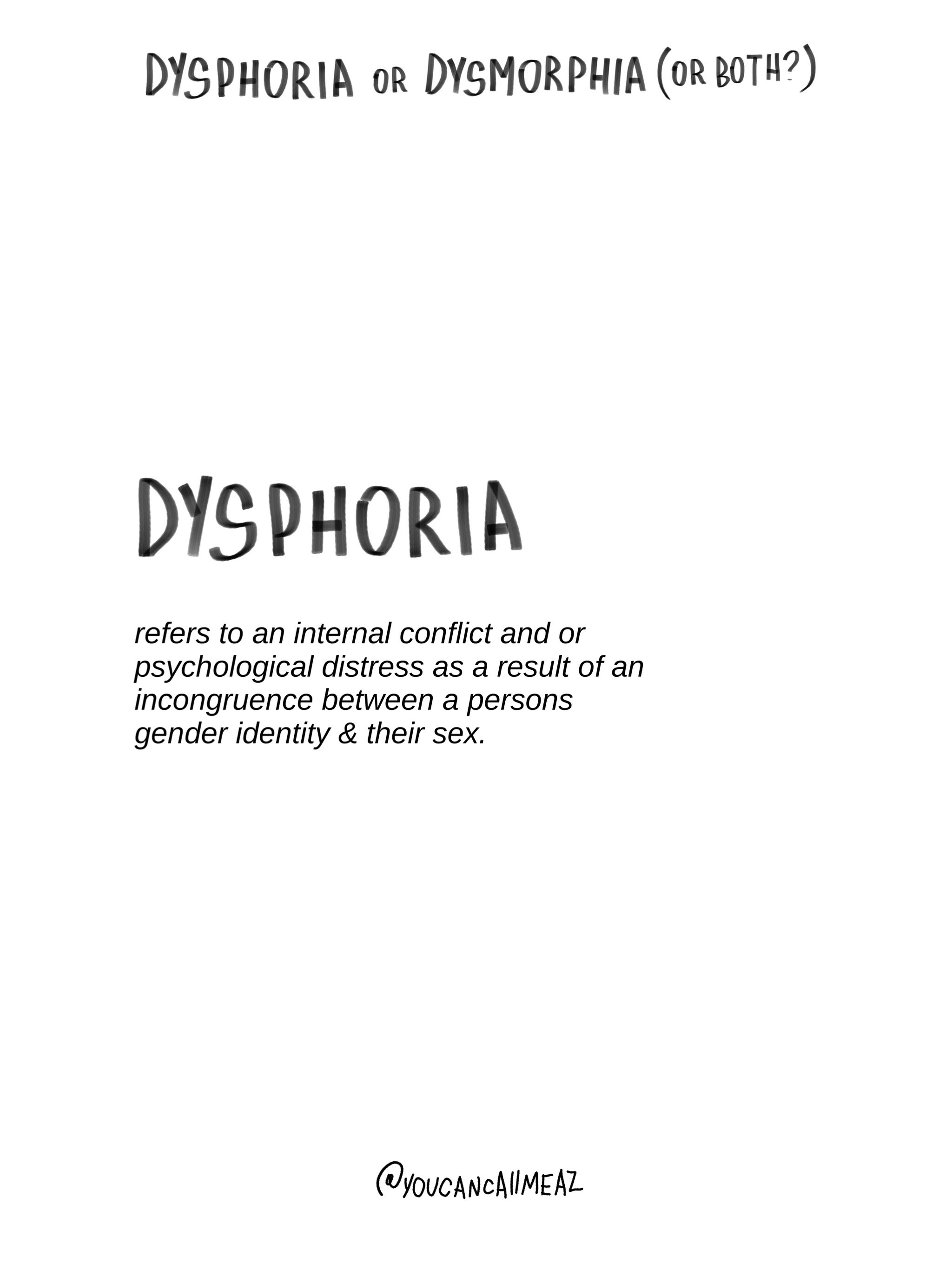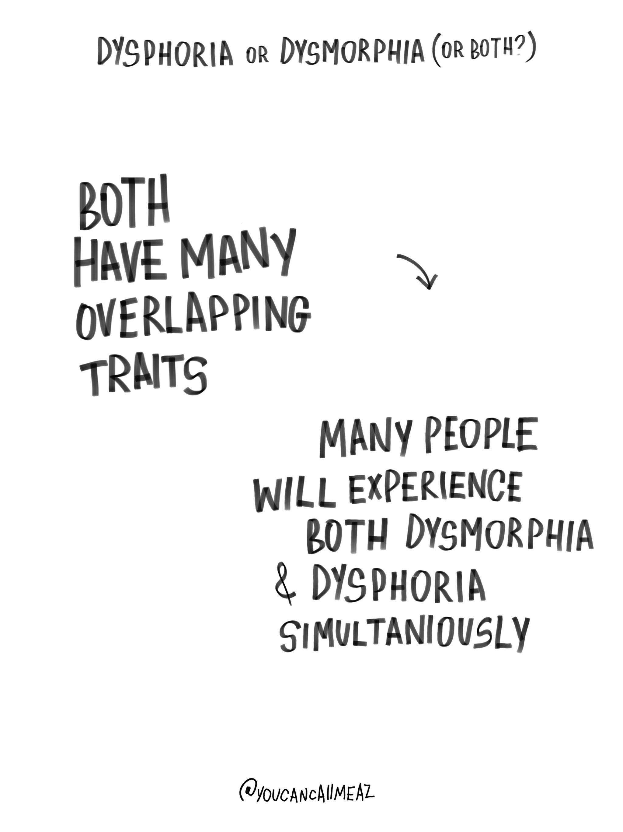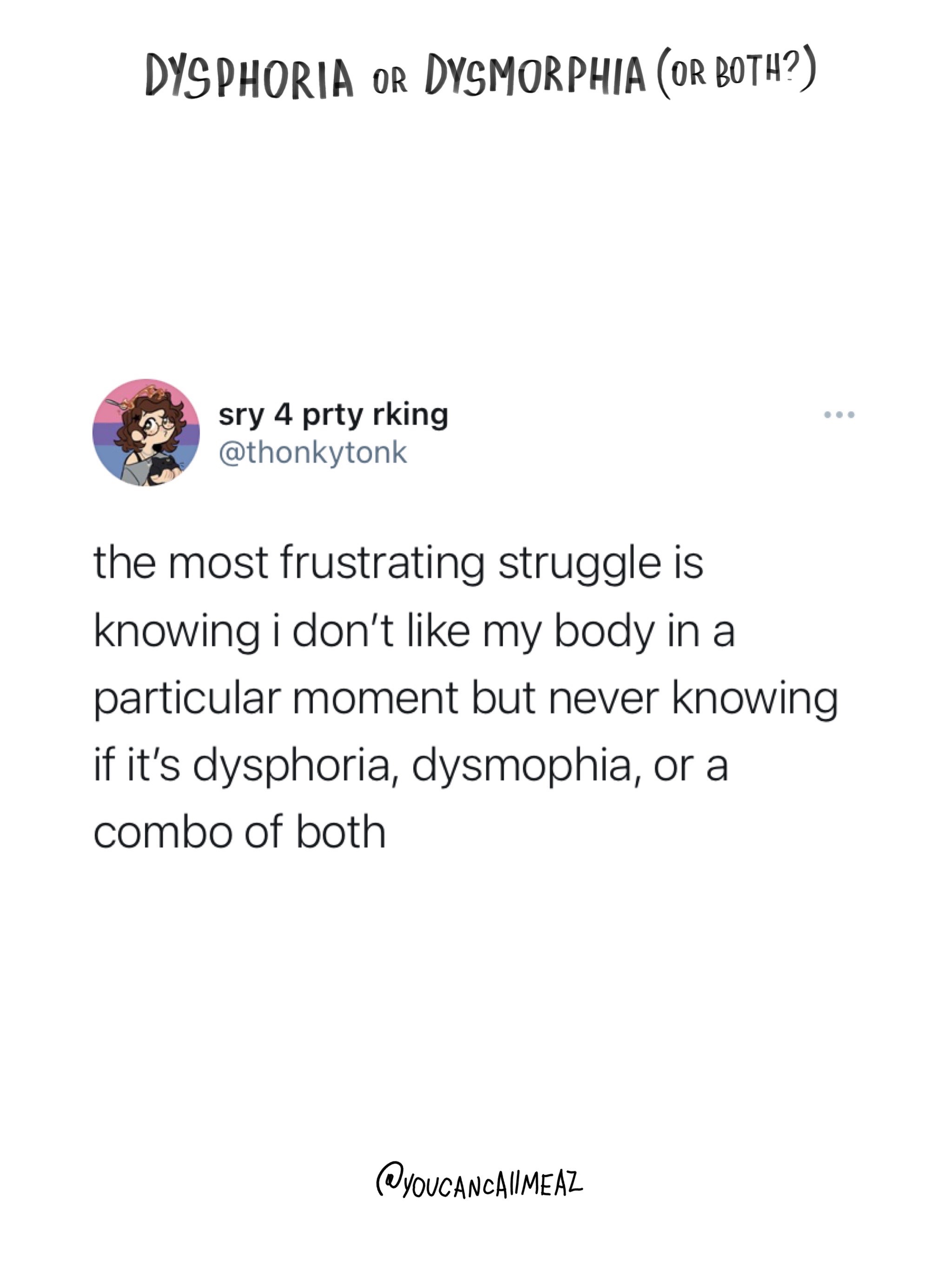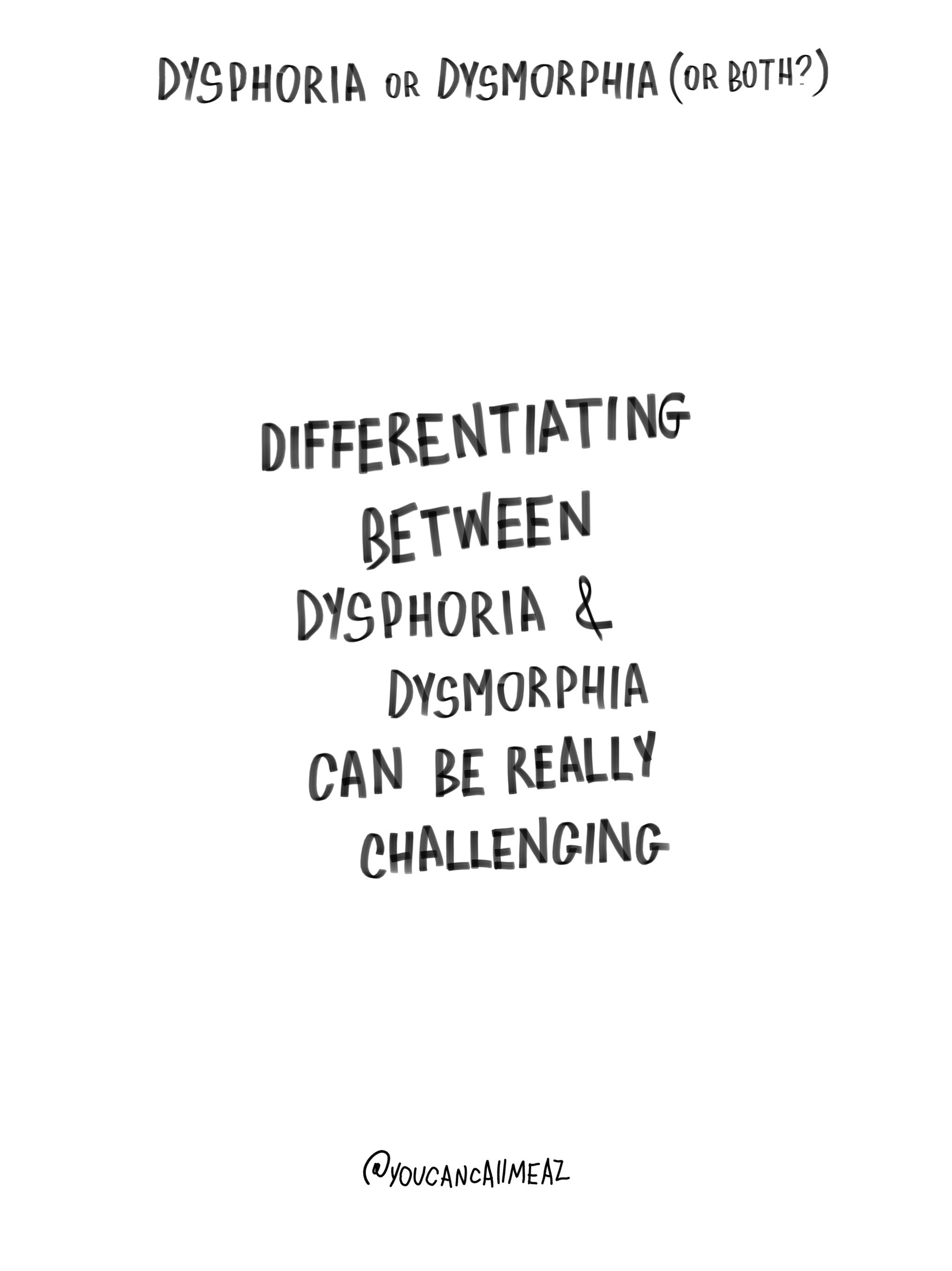the difficulty with dysphoria & dysmorphia is that there are so many overlaps & similarities that it’s super hard to differentiate. making it sometimes harder to work through.