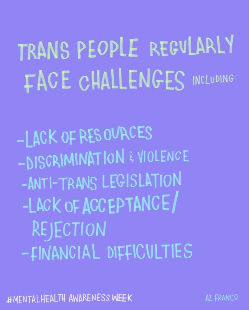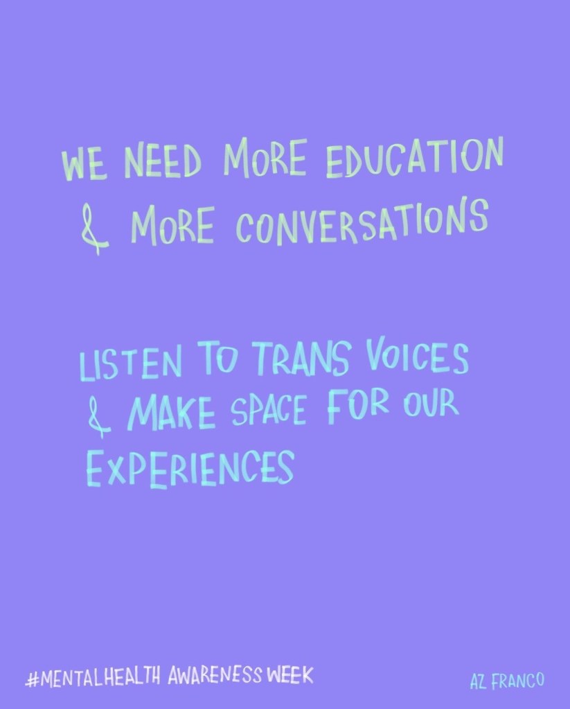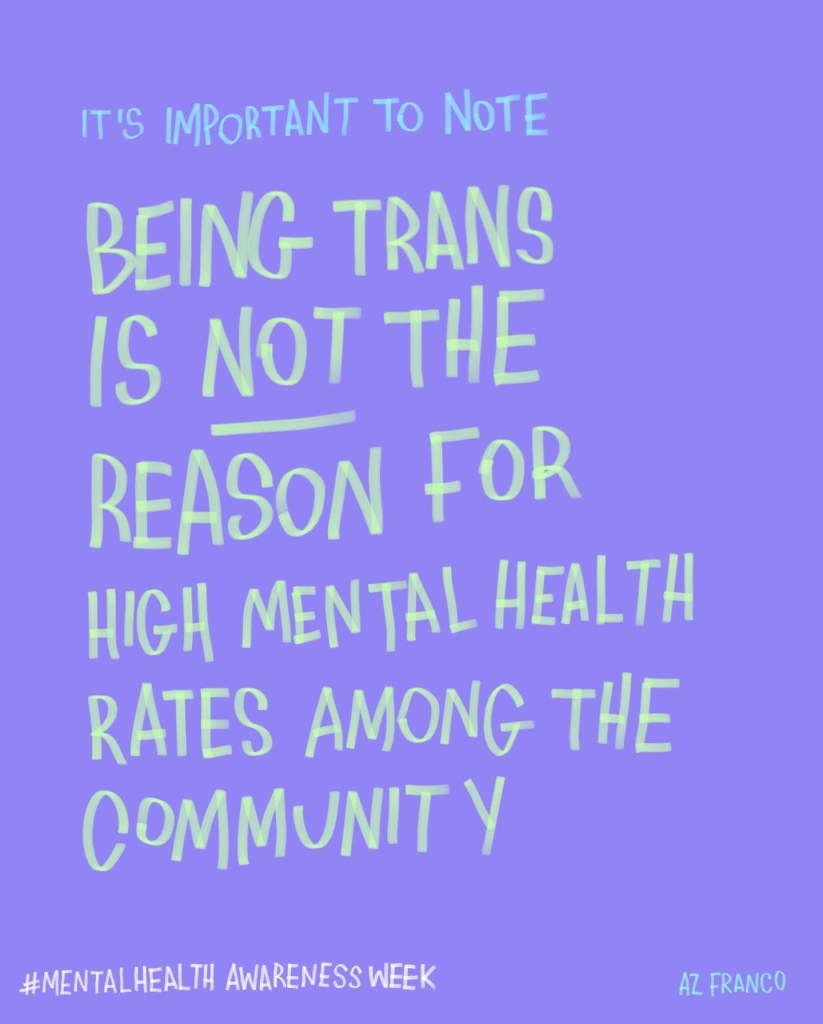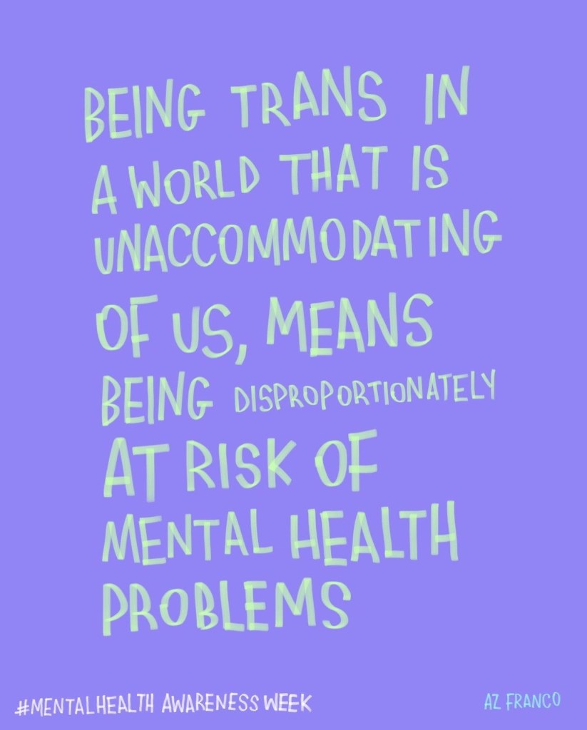 Mental Health Awareness Week! Posted byAz FrancoMay 9, 2022October 26, 2022Posted intrans rights Being trans is not a mental health problem.. gender dysphoria is. #MentalHealthAwarenessWeek Share this:TweetLike Loading...