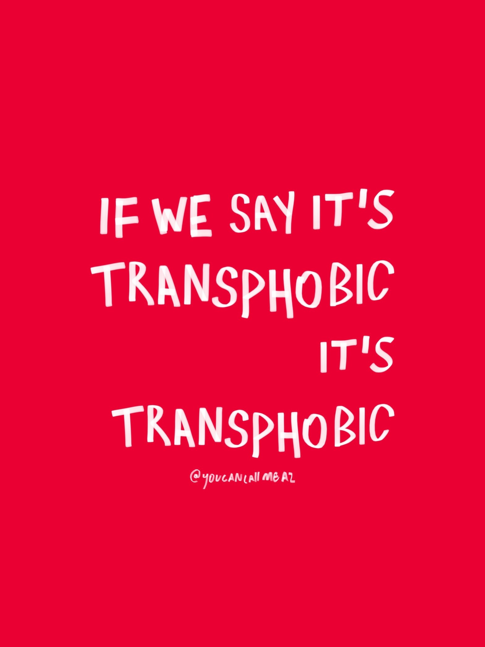 “you’re just being sensitive” “it’s probably NOT transphobic..” on International Day Against Transphobia, Homophobia & Biphobia I wanted to remind you of the following trans people know transphobia better than anyone else does, we live it daily. unfortunately our lived experience makes us experts at identifying transphobia when it presents itself. no need to questionContinue reading “IF WE SAY IT’S TRANSPHOBIC it’s transphobic”