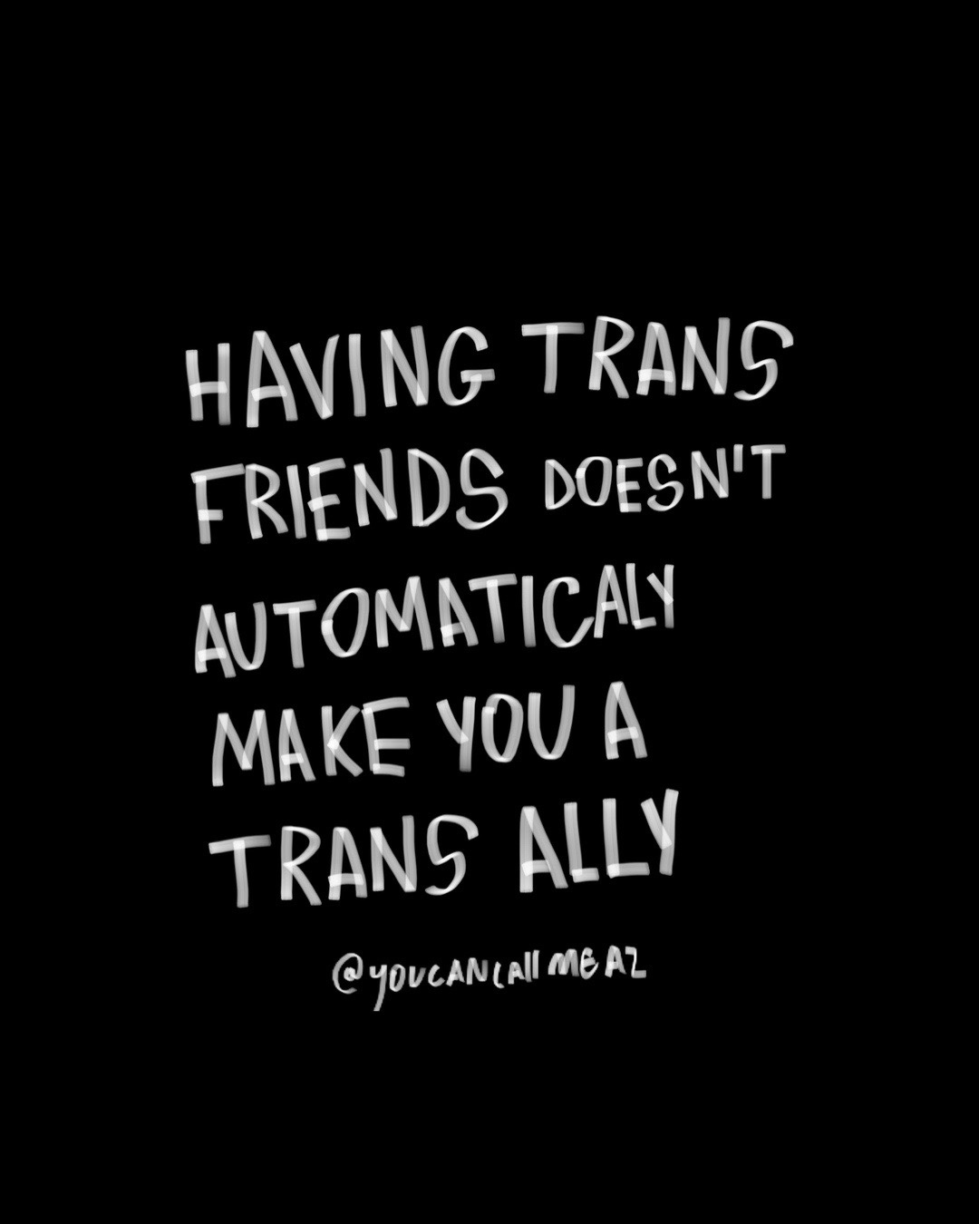 “i’m not transphobic, i know loads of trans people” knowing us / being friends with us doesn’t automatically mean you are an ally to us allyship takes active work & time being an ally requires listening to trans people, using the correct name & pronouns, practicing gender neutral language, learning how best to support transContinue reading “having trans friends doesn’t automatically make you a trans ally”