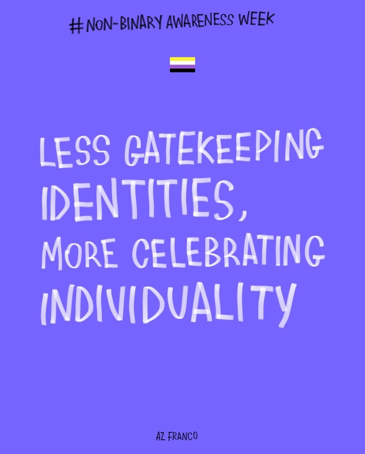 Less gatekeeping identities, more celebrating individuality. #NonBinaryAwarenessWeek #NonBinaryAwarenessWeek2022